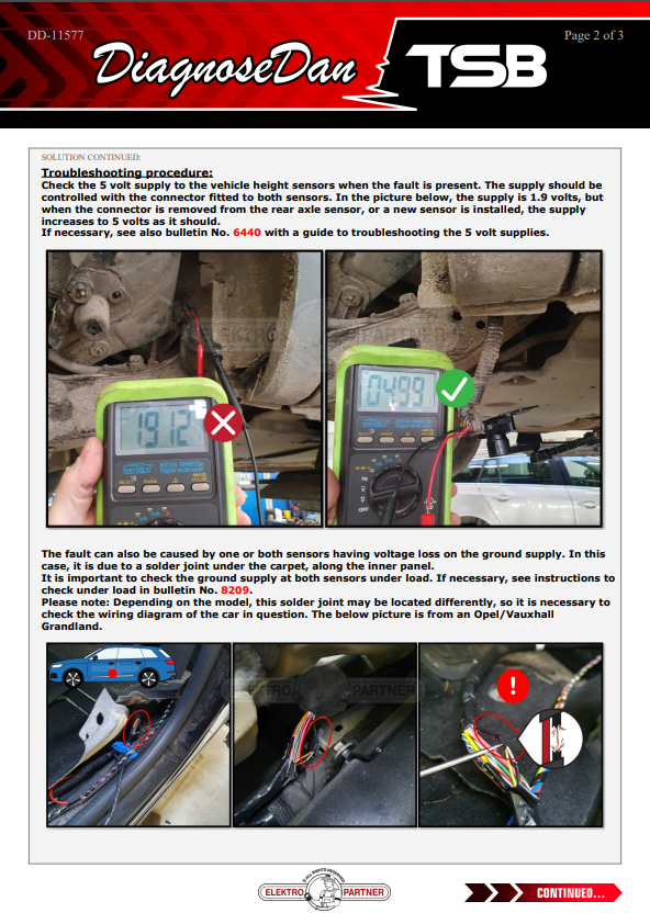 • Voltage loss on the ground supply to the height sensors due to a poor connection in a solder joint within the wiring loom.