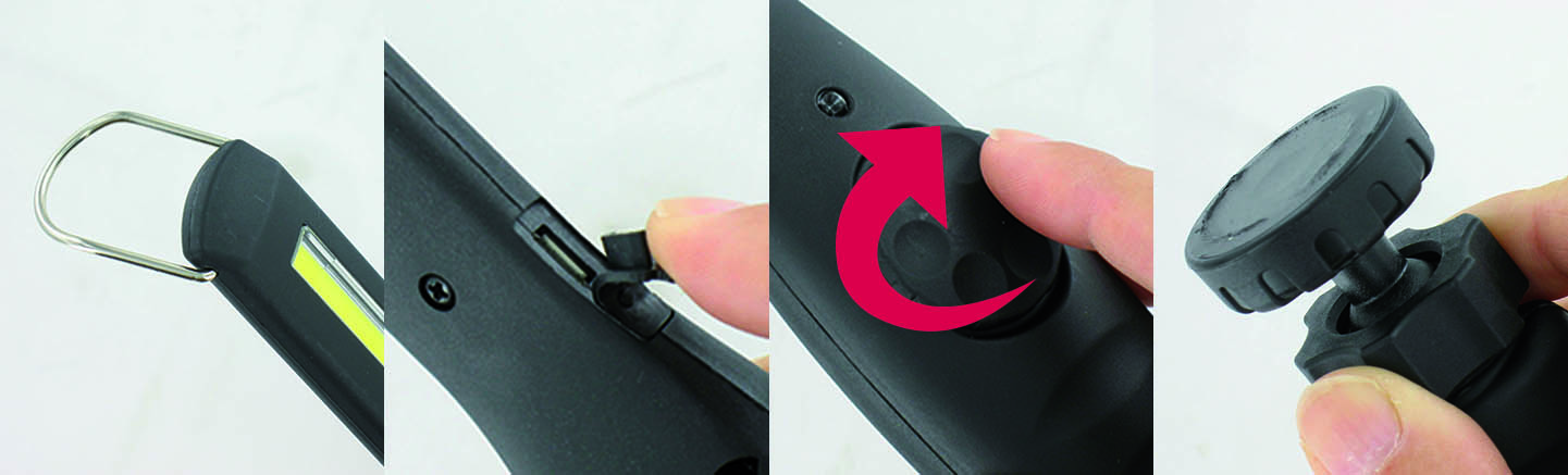 Deux fixations : Crochet de suspension pivotant & base inclinable sur rotule avec aimant puissant