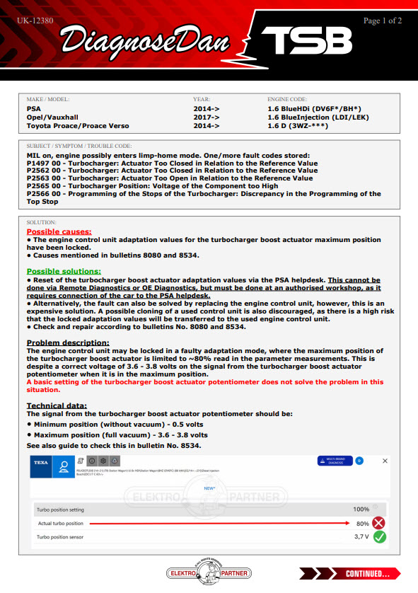 The solution is not a new turbo, actuator, or vacuum valve — and definitely not a new ECU at 2700 euro. Instead, the counters in the ECU must be reset manually. PSA’s own helpdesk can connect remotely via the OE diagnostic tool and clear the adaptation lock.