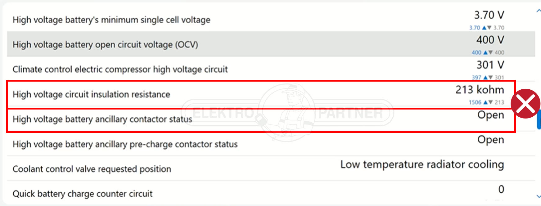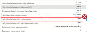 Live data is a valuable tool in cases like this. Every EV has a threshold where it sets an insulation fault. By watching the values, technicians can see exactly when the Jaguar chose to disconnect the battery.