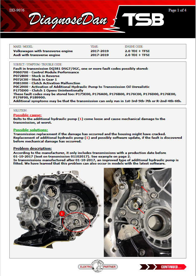 Er zijn ook TSB's over software-updates die verschillende schakelproblemen bij deze transmissie kunnen oplossen. LET OP ! Als de de servicecampagne nog niet is voltooid (verbeterde pomp) , kunt u na een andere reparatie en software update een nieuwe foutcode krijgen op de pomp wanneer u de software bijwerkt naar de nieuwste versie !
