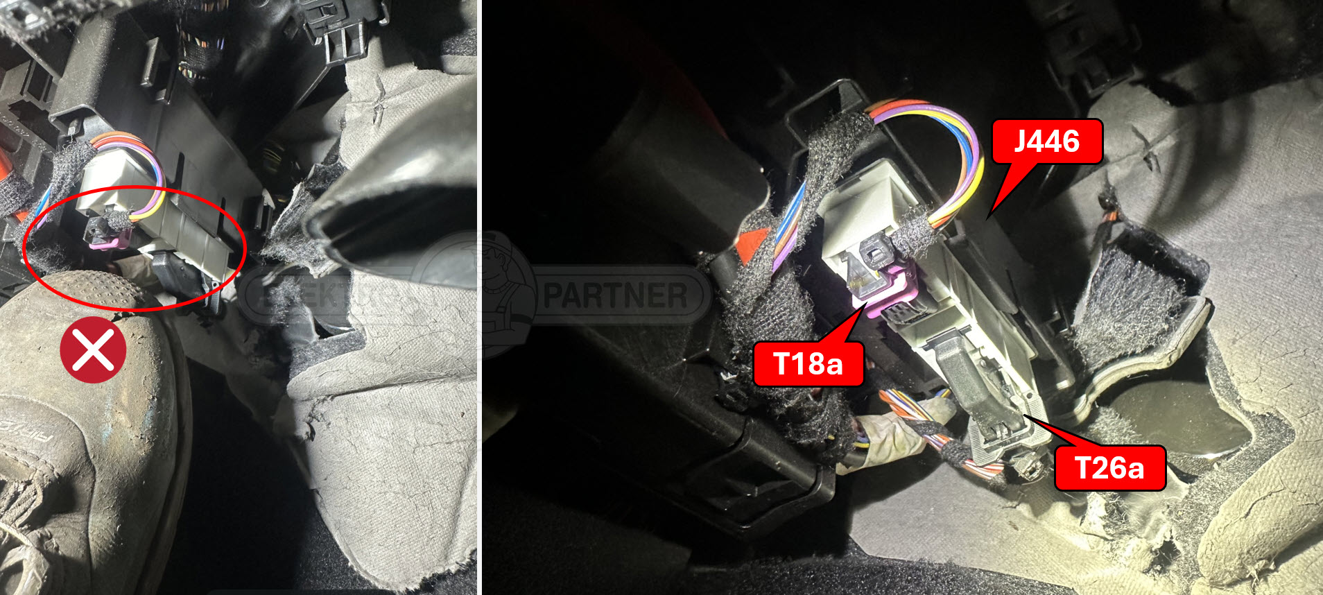 • If the error doesn’t appear during a workshop visit, check the connector near the pedal area or lower dash panel.