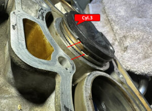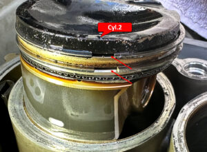 Given that the engine had never been taken apart, not even under warranty, this alignment was surprising. While it’s not uncommon for piston rings to rotate and then halt when the gaps align, it’s typically not a desired or intentional configuration. However, in this engine’s case, the aligned ring gaps, though unexpected, were not the root cause of the issues being faced. This discovery underscores the complexity of engine diagnostics and the importance of not jumping to conclusions based on singular observations.