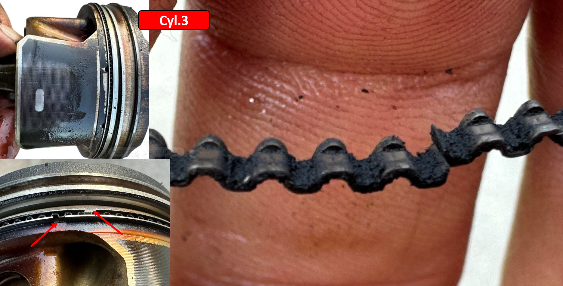 Upon removing the pistons, an unexpected observation was made: the ring gaps on the piston rings were perfectly aligned. Intriguingly, this alignment was not just present on the problematic