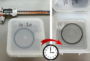 placed in a sealed container filled with petrol and left undisturbed for several hours.