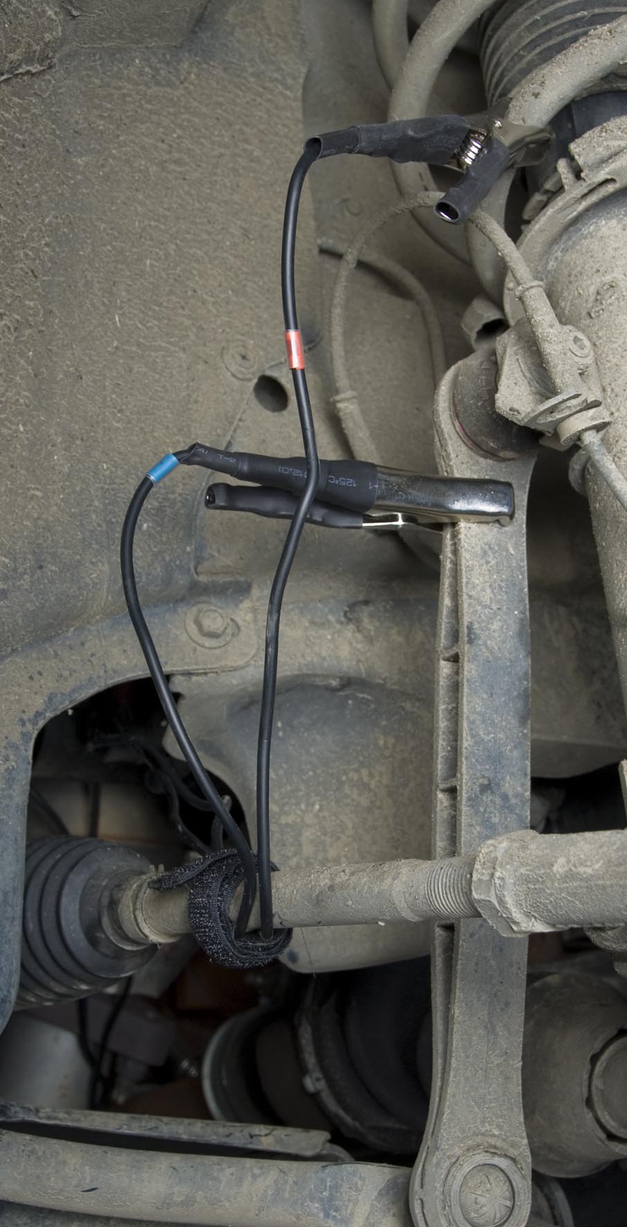 Clamps can be fixed onto many vehicle locations for road testing when diagnosis is difficult.