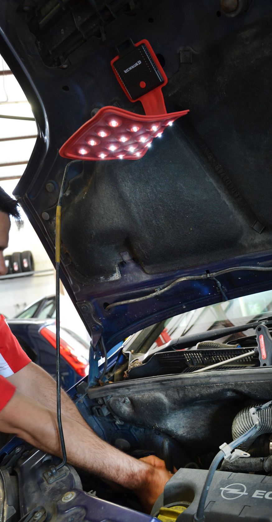«LUMEN TECH™ LEDs : 16 High output wide angle intensely bright Light Emitting Diodes with three light functions (low, med, and high) that can be bent into positions to create a focused spot or a broad flood light