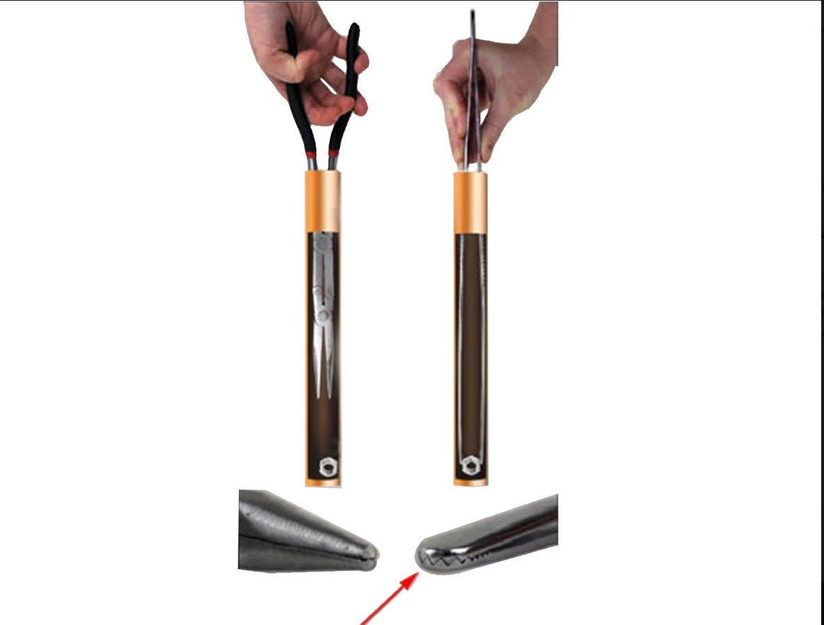 The MANTUS™ Tight Access Tool is a versatile tool, featuring surgical stainless steel with serrated interlocking hands at the end of a 35cm reach. It bites and grabs wires, gaskets, tubes, tools, terminals, etc. The ends double as an abrasive surface which can be used to scrape corrosion from a variety of surfaces including spade terminals, relays, fuses and more.