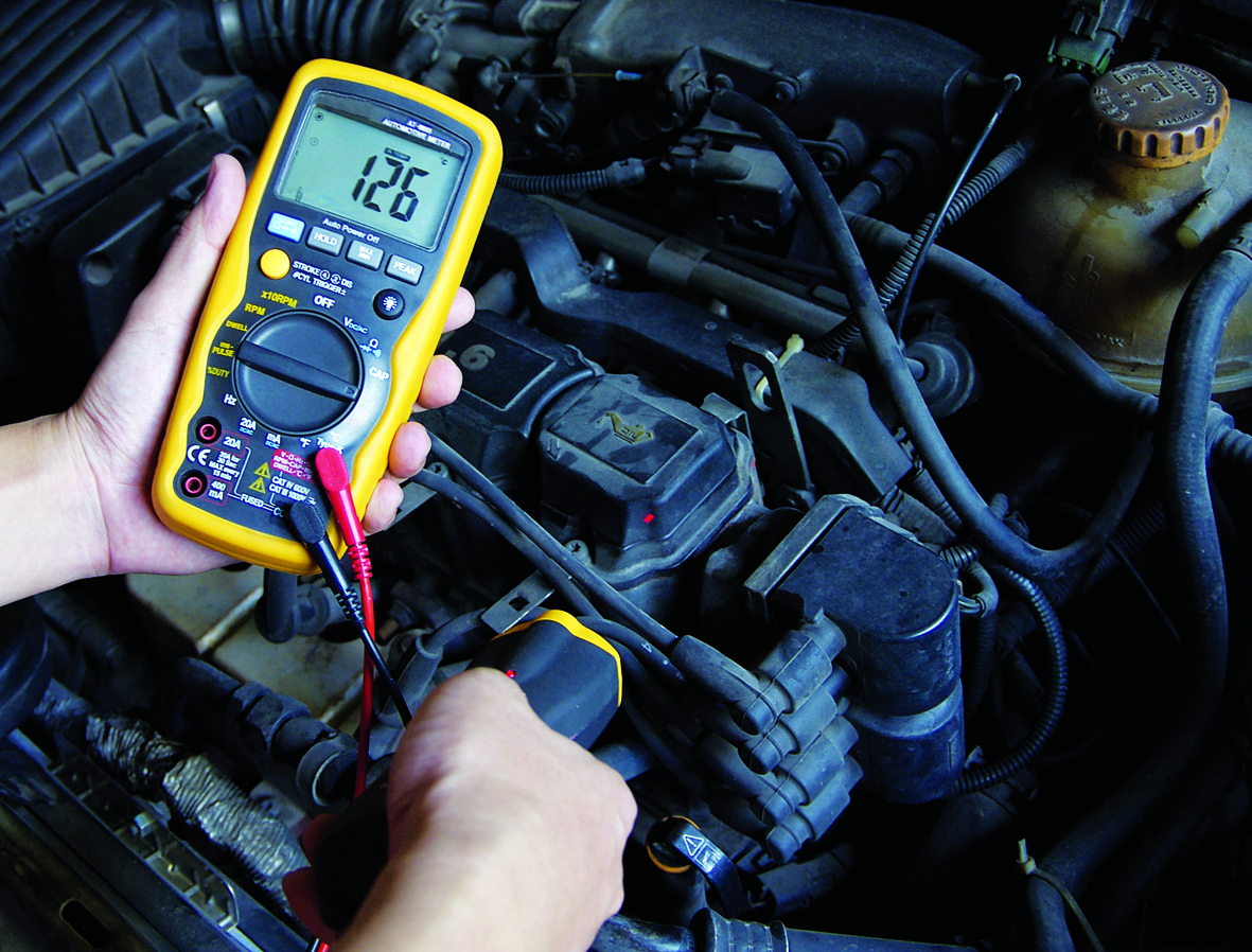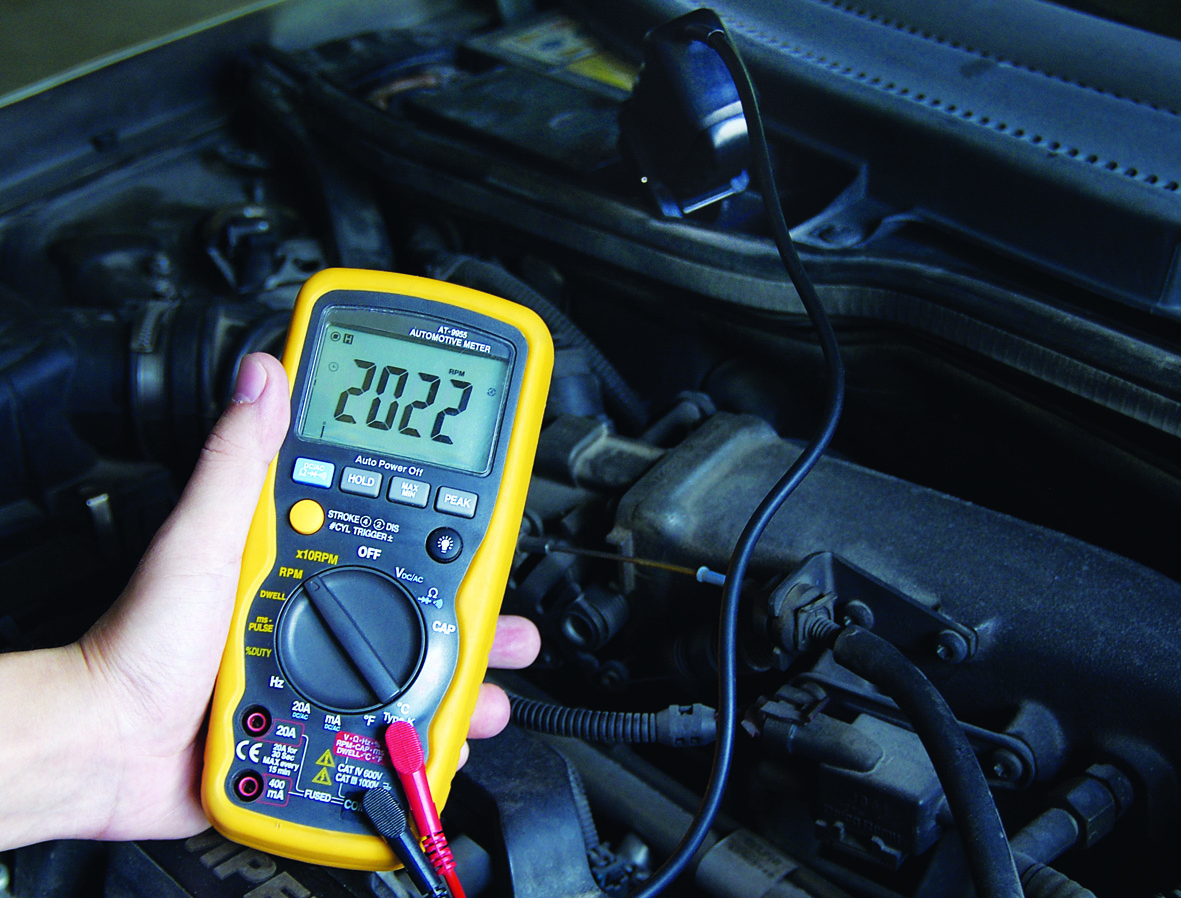 14 Functions including DCV, ACV, DCA, ACA, Resistance, RPM (Tach), Frequency, Dwell angle, Duty cycle, Temperature (IR Temperature) (ºC/ºF), Capacitance, Continuity and Diode Check
