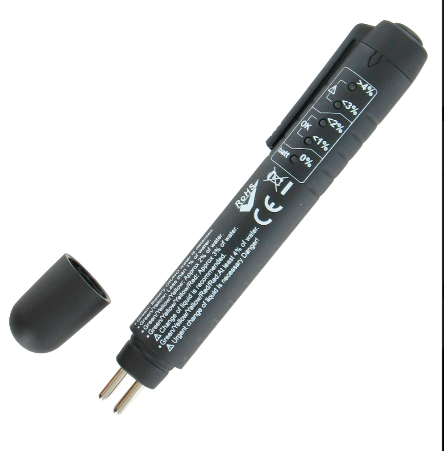 Integrated circuitry checks moisture content of fluid by measuring the electrical resistance and comparing it with acceptable limits