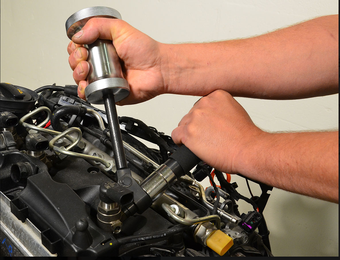 Single universal kit that enables all types of moderately frozen or caked injectors to be removed without removing the electrical part, even on the latest vehicles.