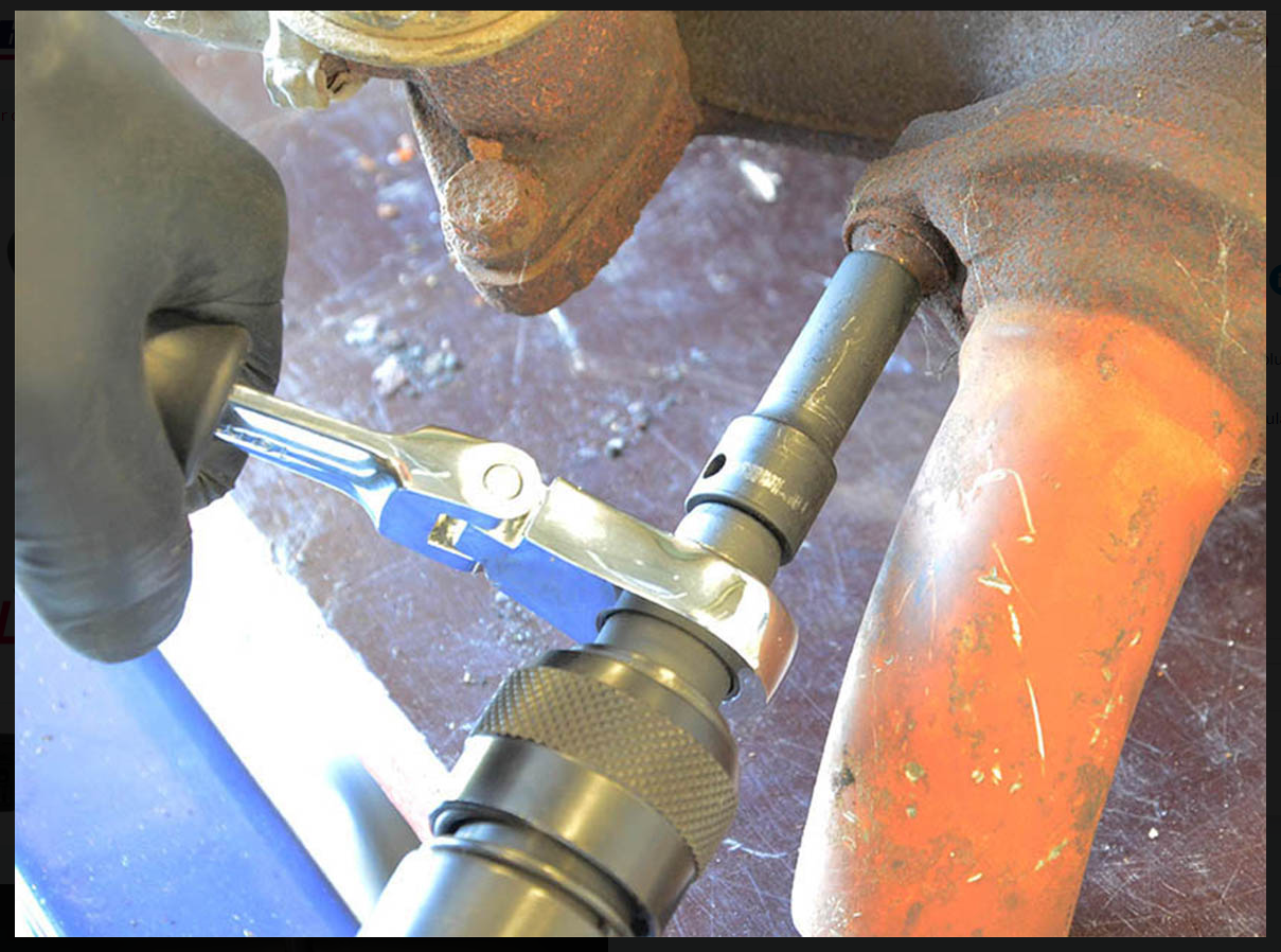 The Vibroshock® creates an axial vibration that brakes the welding between the female and male thread applying in the same time a controlled torque to untight the frozen assembly avoiding the risk of breakage.